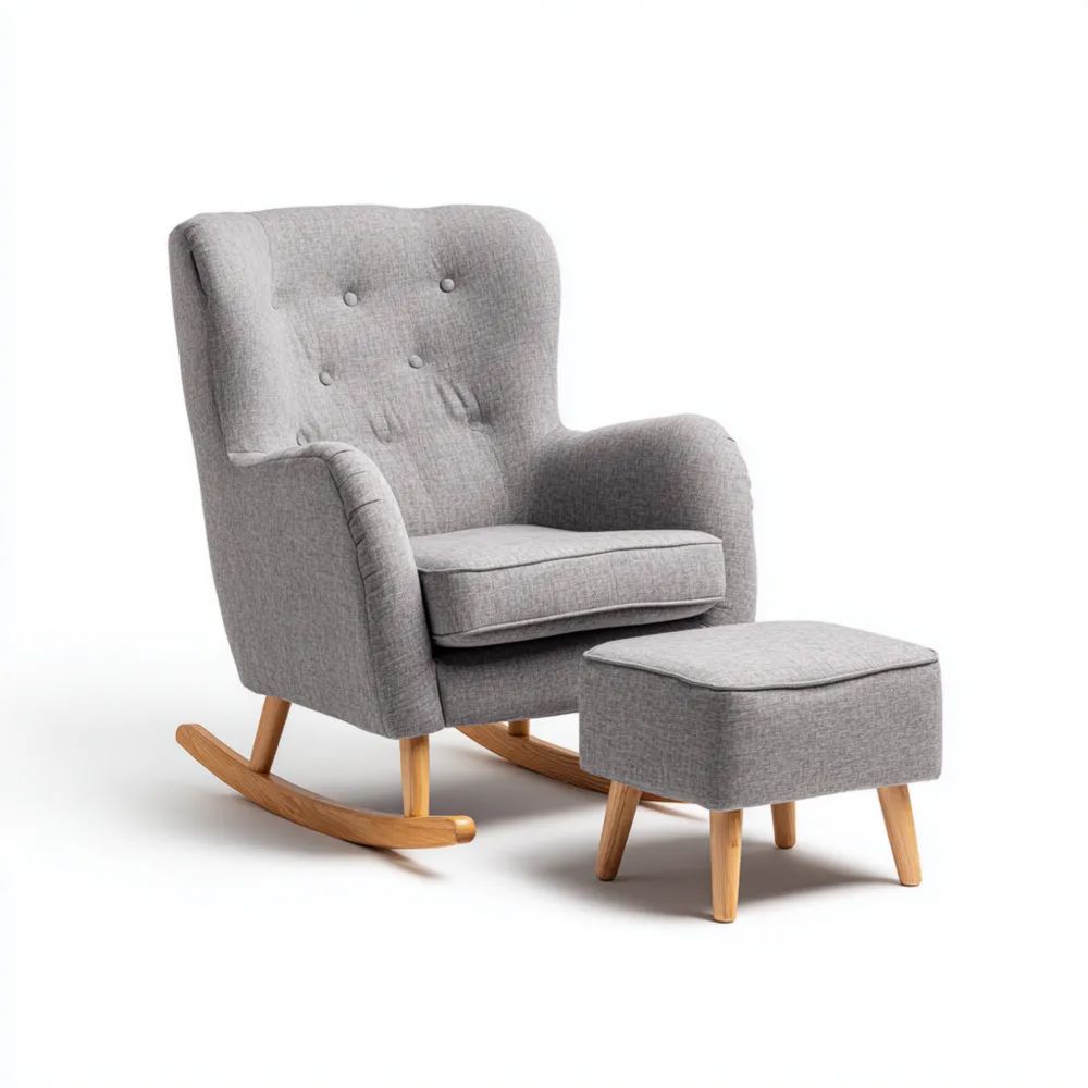 Sedia a Dondolo con Poggiapiedi Tessuto 75x85x95 cm - Grigio - Design Classico