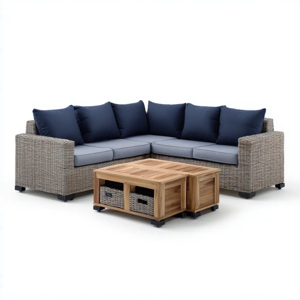 Set di divani da esterno in rattan 220x220x75 cm - Grigio/Blu - Design moderno