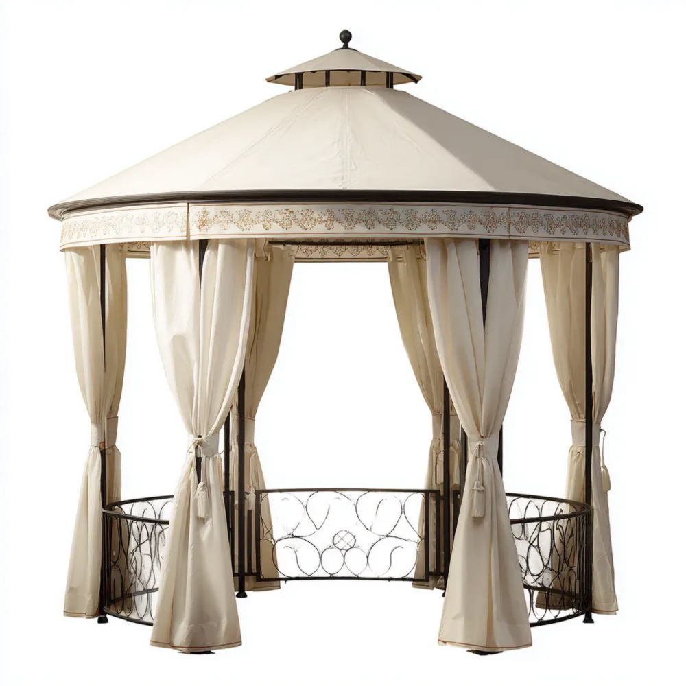 Materiale e ArtigianatoLa struttura è realizzata in metallo robusto con tende in poliestere beige, garantendo durata e protezione dalle intemperie.