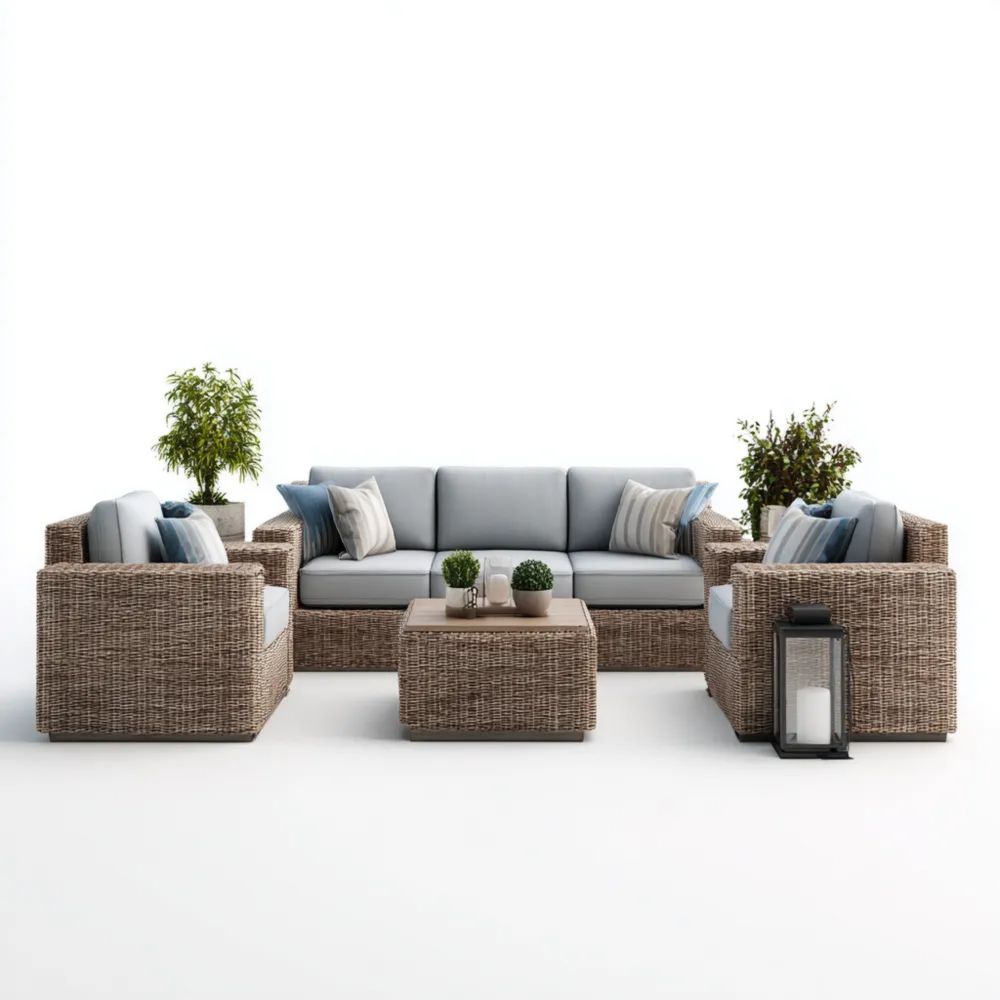 Funzionalità principaliProgettato per accogliere numerosi ospiti, questo set offre ampio spazio di seduta e un tavolino centrale pratico.