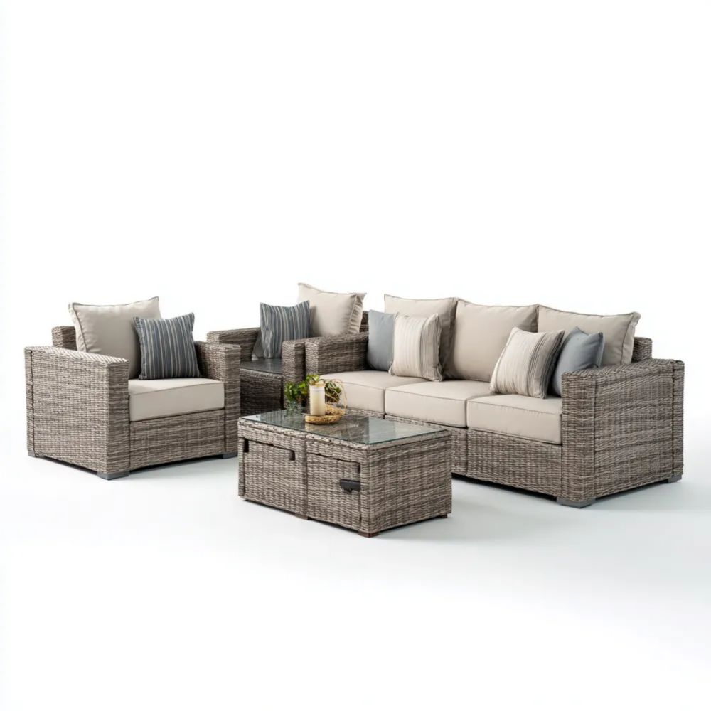 Funzionalità principaliIl set include un tavolo con piano in vetro per praticità e stile oltre a cuscini rimovibili per una facile pulizia. Perfetto per terrazze, giardini o cortili.