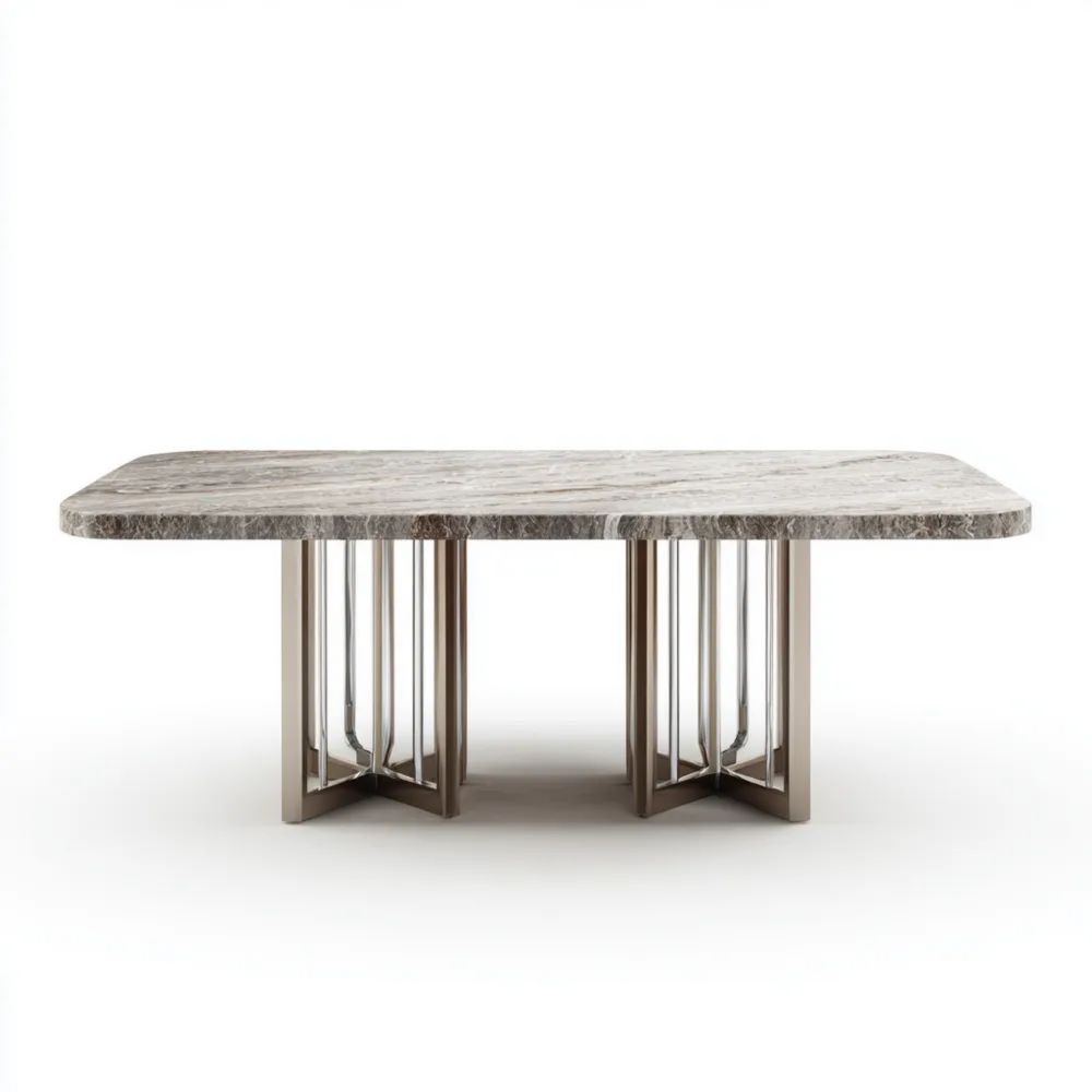 Descrizione del prodottoUn elegante tavolo da pranzo in marmo che combina estetica e funzionalità, perfetto per qualsiasi ambiente contemporaneo.